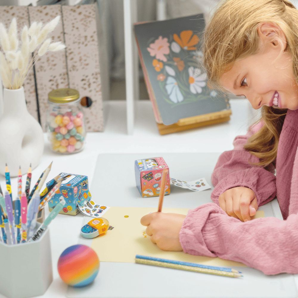2 colores de tinta por juego: rosa y violeta o azul y turquesa