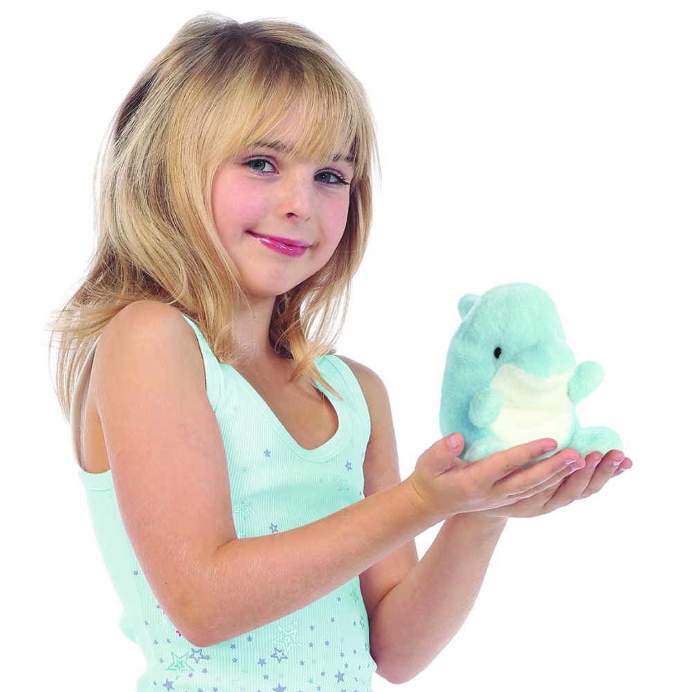 Este pequeño delfín se adapta a la palma de tu mano. Está relleno de judías, lo que lo hace particularmente suave y tierno.
